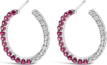 Sterling Silver Lab Created Ruby and White Sapphire Hoop Earrings