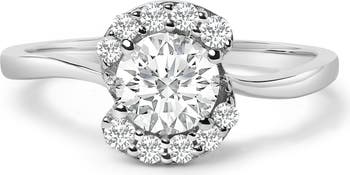 Sterling Silver Lab Grown 1.0 Cttw Diamond Oval Shaped Halo Engagement Ring