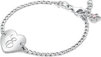 Made for her loving heart, this sterling silver ID bracelet features a sweet heart design and her engraved initial. A keepsake wrapped by Tiny Blessings.