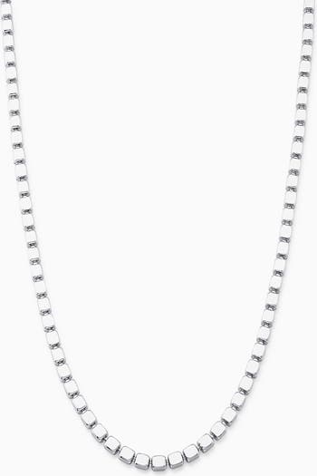 A clean, modern take on a classic chain. Polished cube links catch the light from every angle, creating a sharp yet understated geometric look. Perfect on its own or layered, it brings effortless style to anything you pair it with.