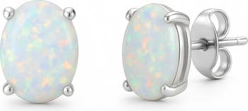 Crafted from sterling silver and stamped 925, these oval studs measure 7x5mm and showcase luminous created white opal stones. Their sleek design offers a subtle yet elegant sparkle, perfect for enhancing any outfit. Lead and nickel free, they ensure comfortable wear while delivering a timeless, sophisticated look.
