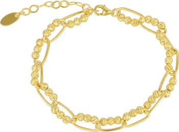 Spero London Sterling Silver Paperclip and Beaded Twisted Chain Bracelet, Main, color, Gold