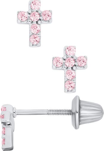 Add a meaningful touch of sparkle with these Pink Cubic Zirconia Sterling Silver Cross Stud Earrings — a beautiful keepsake your little one will cherish!