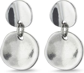Sophisticated earrings featuring two uneven round shapes held together by a small hoop.