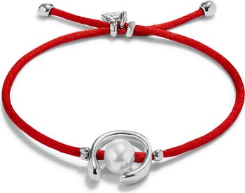 - Sterling silver-plated red thread bracelet with shell pearl accessory