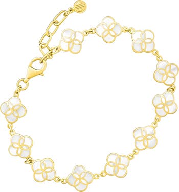 - Petal shaped gemstones are set all over by hand onto lightweight 925 sterling silver stud bracelet in a luxurious 18K yellow gold vermeil finish.