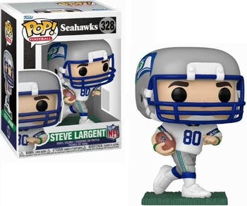 Draft POP! Steve Largent, wide receiver for the Seattle Seahawks, to your NFL collection in his white and grey throwback uniform! Which team will POP! Steve Largent and the Seahawks play next in your football lineup? Vinyl figure is approximately 4 in (10.2 cm) tall.