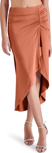A ruched detail adds a hitch to the hemline of this oh-so-comfy skirt crafted from soft, stretchy jersey fabric.