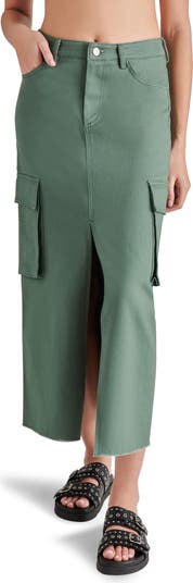 The cargo trend comes for skirt day with a sturdy, stretch-kissed cotton option popped with all the required pockets and a raw-edge hem.