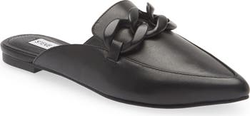 Chunky chains embolden the vamp of a pointed-toe mule that will bring contemporary sophistication to your poised style.