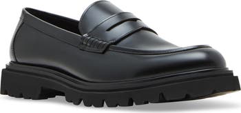 A classic penny keeper and slender moc toe add timeless sophistication to a leather loafer grounded by a durable lug sole for optimal stability.