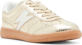 A glitter-encrusted panel adds adorable charm to a play-ready sneaker set on a cushioned footbed for all-day comfort.