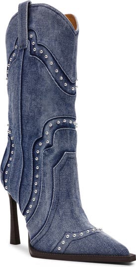 A stiletto heel adds bold, modern glamour to a look-defining boot featuring polished studs and unmistakable Western details.