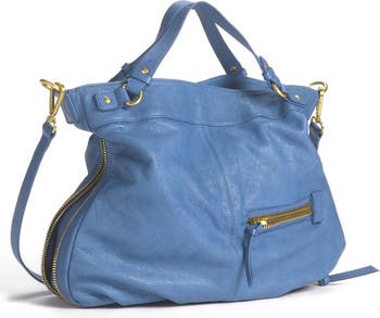 Colorful pebbled leather composes a chic and slouchy satchel with a ziparound gusset for additional capacity.