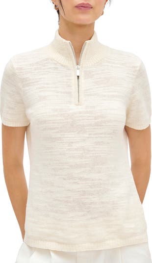 A half zip and abbreviated sleeves give a casual attitude to this soft sweater knit from a linen-and-organic-cotton blend.