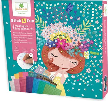 Sycomore Stick'N Fun – L Mosaics: Enchanted Dreams – 5y+ Let children dive into a world of imagination with the Stick'N Fun L Mosaics Enchanted Dreams set! This larger mosaic kit allows kids to create stunning, colorful scenes with vibrant stickers that are easy to peel and place. Designed to develop fine motor skills, concentration, and creativity, this mess-free craft activity is perfect for quiet play, travel, or as a magical gift for young dreamers. Specifications: Color: Multicolor Age Recommended: 5 years and up Size (inches): 10.24 × 1.97 × 10.24 in Material: Paper cards with foam/self-adhesive mosaic stickers Weight (lbs): 1.32 lbs Care Instructions: Keep away from water; store flat to maintain the quality of mosaic sheets and templates.