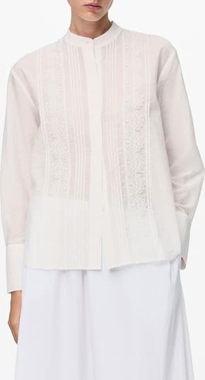Dropped shoulders frame this polished shirt cut from a crisp cotton blend and textured with vertical stitching.