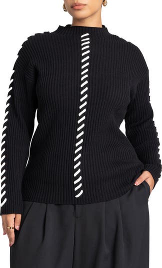 An easy ribbed mock-neck sweater with relaxed drop shoulders.