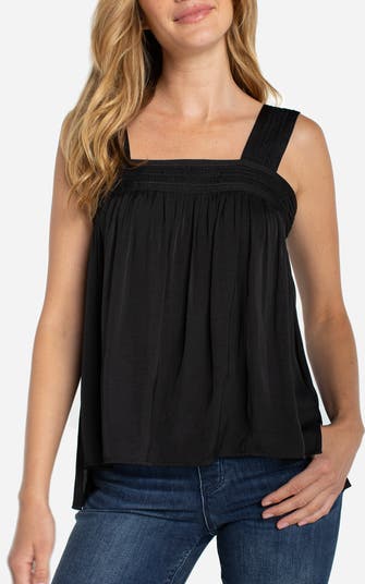 Cut in a swingy silhouette from smooth sateen, this square-neck tank is suspended by thick straps and accented with intricate stitching.