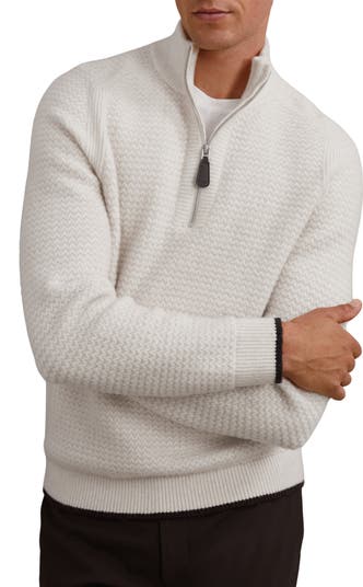 A chevron pattern with a brushed finish subtly elevates this sweater knit from soft wool-warmed yarns in a fit that layers easily as the season's chill deepens.