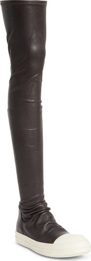 Rick's bent for the bold is showcased in this thigh-high hybrid of a sneaker and boot boasting the label's signature chunky bumper and a sleek, leg-hugging shaft that fits like a glove.