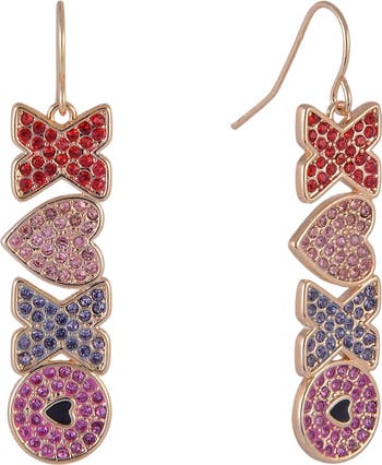 Spread the love wherever you go with these playful hugs and kisses symbol linear earrings! Bold red, flirty pink, and playful purple hues dance along a chic dangling design, adding a pop of color and personality to any outfit. Lightweight and comfy, they’re perfect for date night, girls’ night, or just treating yourself to a little sparkle. Sweet, stylish, and totally kissable—these earrings are love at first sight!