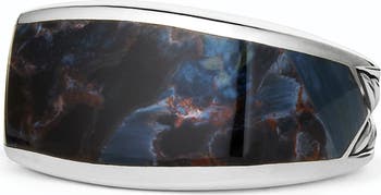 Slight angles sharpen the face of this sterling silver ring inset with a smooth slab of pietersite and engraved with signature chevron.