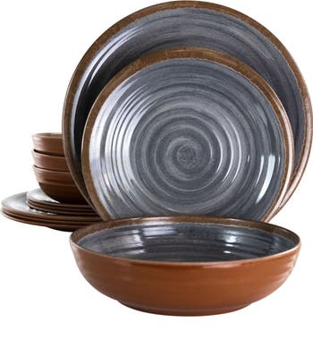 Guest will adore the unique styling of the Elama Stone Oak 12 Piece Lightweight Melamine Dinnerware Set in Black. Draw the crowd to the dinner table with black swirls over a brown exterior that is featured in every dish. Made of lightweight melamine, these especially thin pieces can easily fit in most storage spaces. The light material is practically weightless while providing durable shatter resistant quality. For best care, the set is top rack dishwasher safe and is not microwave safe. Perfect for outdoor gatherings, kids parties, picnics or for casual daily activities.