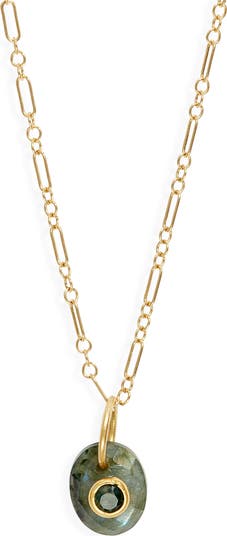 A rich mix of laboradite and agate add earthy color to this chain necklace that complements modern and more boho-chic looks.