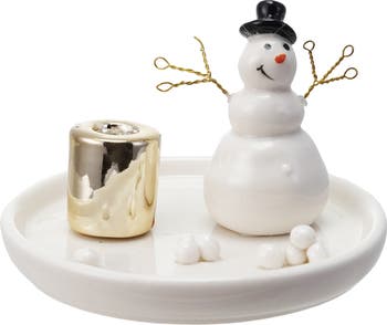 - A charming stoneware taper holder featuring a joyful snowman design with elegant gold electroplating, adding a festive touch to seasonal décor