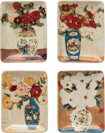 Set of 4 multicolor stoneware dishes with flowers in vase print; Add a whimsical touch to a dinner party with this playfully designed plate; Made from 100% stoneware; Dish measures 3" L x 1" W x 4" H