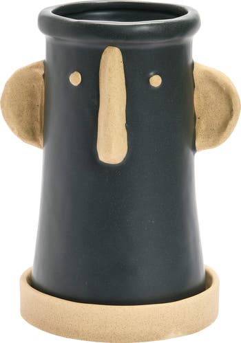 Storied Home Stoneware Face Planter with Saucer, Main, color, Black