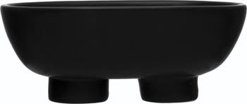 Black stoneware footed bowl; Beautifully corral small everyday items, or decoratively display dried botanicals in this striking accent bowl; Made from 100% stoneware; Bowl measures 12" L x 8" W x 5" H