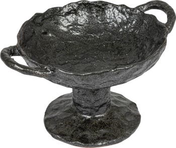 This black stoneware footed plate with handles is a perfect addition to the serveware collection. This plate has a rustic and charming design that features a footed base and two handles that make it easy to carry and serve. The plate has a black color that is enhanced by a reactive glaze finish that creates subtle variations in shade and texture, making each plate unique and special. The plate is made of stoneware, which is a sturdy and durable material that can withstand high temperatures and frequent use. The plate is also versatile and can be used for serving various dishes, such as soups, salads, pasta, and more. The plate can complement any style, from French country to traditional to farmhouse to cottagecore, and add a cozy and inviting touch to the table. The plate measures 9.5 inches in length, 6.5 inches in width, and 5 inches in height, making it generous enough to hold a large portion of food. Use it for everyday dining or special occasions, this black stoneware footed plate with handles will impress the guests and enhance the food presentation.