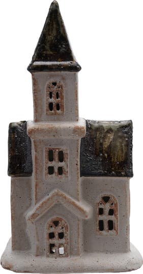 Enhance the winter and Christmas decor with this exquisite Stoneware House Figurine, designed with a reactive glaze that presents a sophisticated palette of white and brown hues. The intricate detailing and refined finish not only elevate the aesthetic appeal but also contribute to the overall festive ambience of any environment. Crafted from resilient stoneware and silicone, each piece exhibits unique characteristics due to the variations inherent in the glazing process. This figurine's dimensions are 5.25 inches in length, 3 inches in width, and 9.5 inches in height, making it an ideal addition to any holiday decor arrangement.