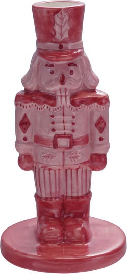 Storied Home Stoneware Nutcracker Taper Holder, Pink and Red, Main, color, Pink