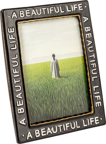 - A sophisticated stoneware photo frame with the heartfelt inscription "A Beautiful Life" in elegant black