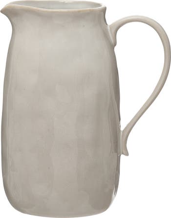 White stoneware pitcher in a reactive glaze; Add a touch of style to any kitchen or gathering space with this artfully hand crafted pitcher; Made from 100% stoneware; 2-quart capacity