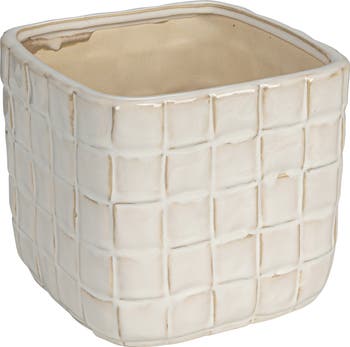 Stoneware Planter with Debossed Woven Grid Pattern, White