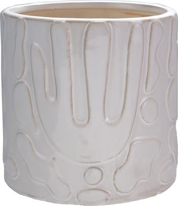 Stoneware Planter with Embossed Design, Cream Color