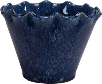 - A charming stoneware planter with a ruffled edge and a reactive glaze in a rich navy blue hue