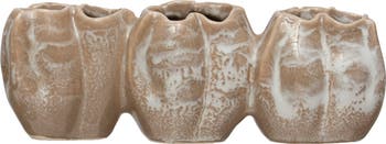 Stoneware Pod Shaped Vase with 3 Sections and Organically Shaped Edge and Distressed Finish