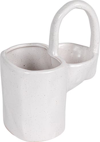 Stoneware Sponge and Dish Brush Holder, White Speckled Finish