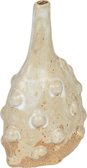 - A simple and elegant stoneware vase that has raised dots and a reactive glaze in white color