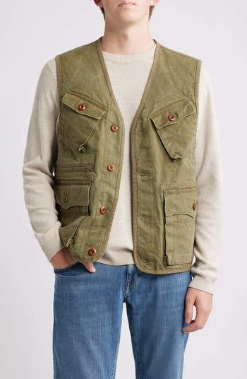 Brave the outdoors in this washed-cotton vest made with plenty of pockets for a utilitarian vibe.