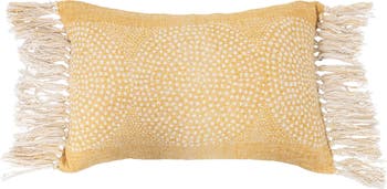 - This whimsical, desert-inspired lumbar pillow features a dot pattern on soft cotton slub, finished with decorative fringe