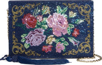 This beautifully crafted handbag is shaped like a hardcover novel and features a deep indigo crystal ground adorned with an intricate floral pattern, evoking the delicate beauty of vintage book covers. Both poetic and practical, it offers enough room for your evening essentials while maintaining its sculptural, storybook silhouette.