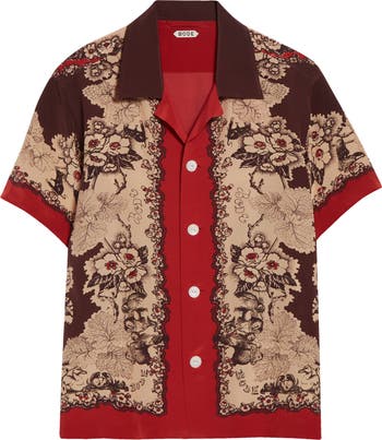 Bode Storybook Silk Camp Shirt, Main, color, Red Black