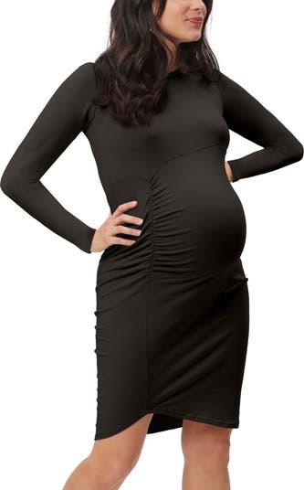 Gathered sides perfect the fit of a bump-flattering long-sleeve dress in a stretchy cotton-and-modal knit.