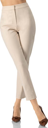 - Straight cut tailored trousers in a natural tone, with simulated back pockets and side detail.